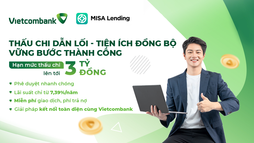 MISA Lending chính thức bắt tay cùng Vietcombank (VCB) mang đến Gói Vay Thấu Chi Tín Chấp Trực Tuyến. Đây là nguồn tiền dự phòng linh hoạt, luôn sẵn sàng 24/7, giúp doanh nghiệp giải quyết mọi vấn đề vốn ngắn hạn một cách siêu tốc.