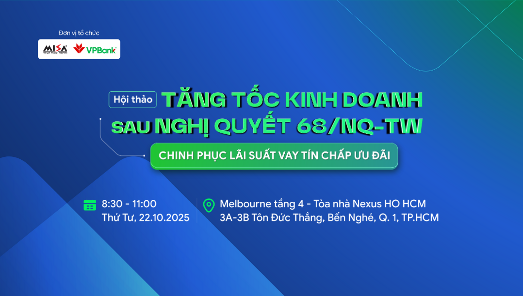 Ngày 22/10/2025 vừa qua, hội thảo “Tăng tốc kinh doanh sau Nghị quyết 68/NQ-TW” do MISA và VPBank đồng tổ chức đã diễn ra thành công, thu hút sự quan tâm của đông đảo chủ doanh nghiệp và hộ kinh doanh (HKD).