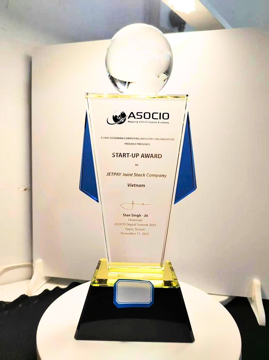 Vừa qua, trong khuôn khổ Hội nghị thượng đỉnh Công nghệ số ASOCIO 2025 tổ chức tại Đài Bắc (Đài Loan), Công ty Cổ phần JETPAY (Công ty con của Công ty Cổ phần MISA), với các sản phẩm MISA Lending và Bankhub, đã chính thức nhận được giải thưởng Start-up xuất sắc (Start-up Award).